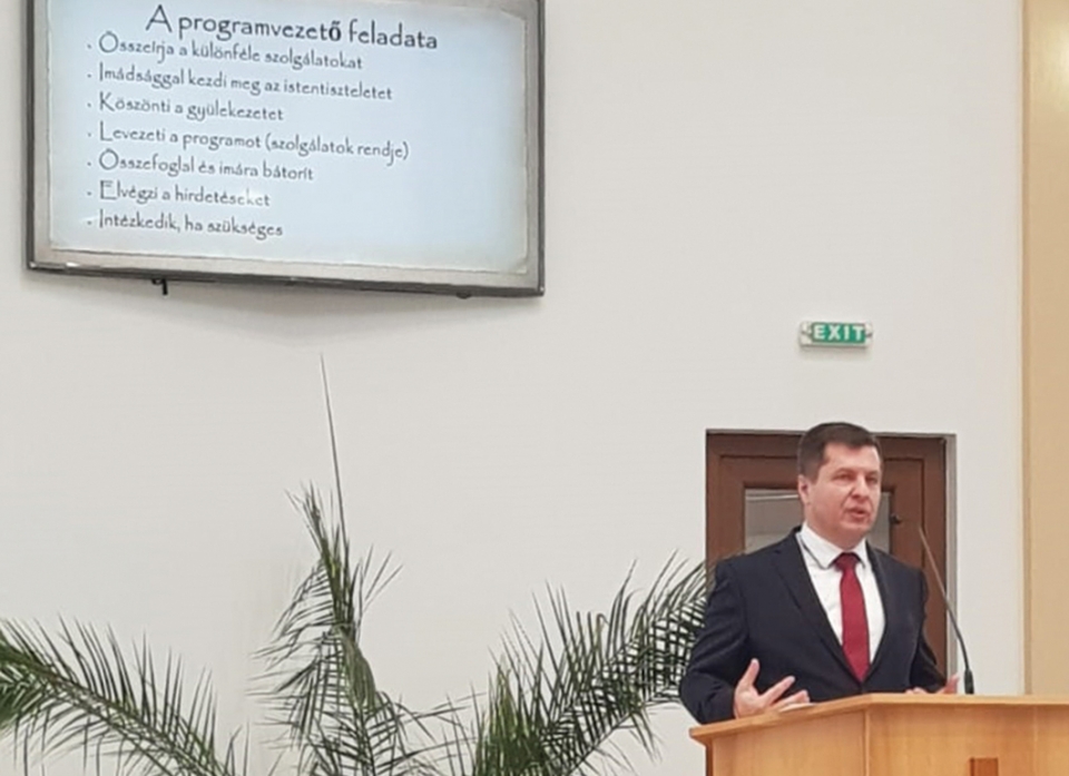Az előadás témája az Istentiszteleti rend és programvezetés volt, amit Veress Ernő testvér tartott. Az előadás – és a konferencia – egyik főcélja, hogy istentiszteleteinket az ékesség és a jó rend jellemezze (1Kor 14:1). Hadd soroljak fel néhány igazságot az elhangzott tanításból.